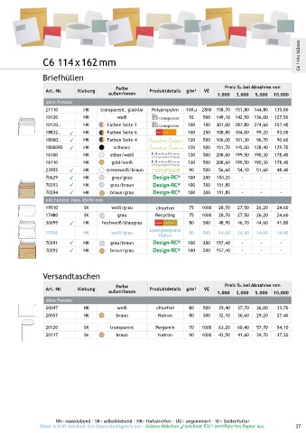Blaue Schrift zeichnet den Dauerniedrigpreis aus · Grünes Häkchen zeichnet FSC -zertifiziertes Papier aus. 37