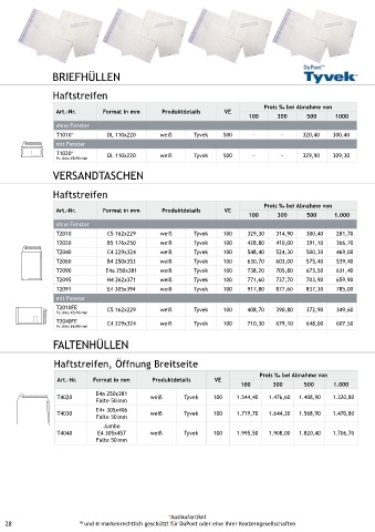 T2010FE C5 162x229 weiß Tyvek 100 408,70 390,80 372,90 349,60